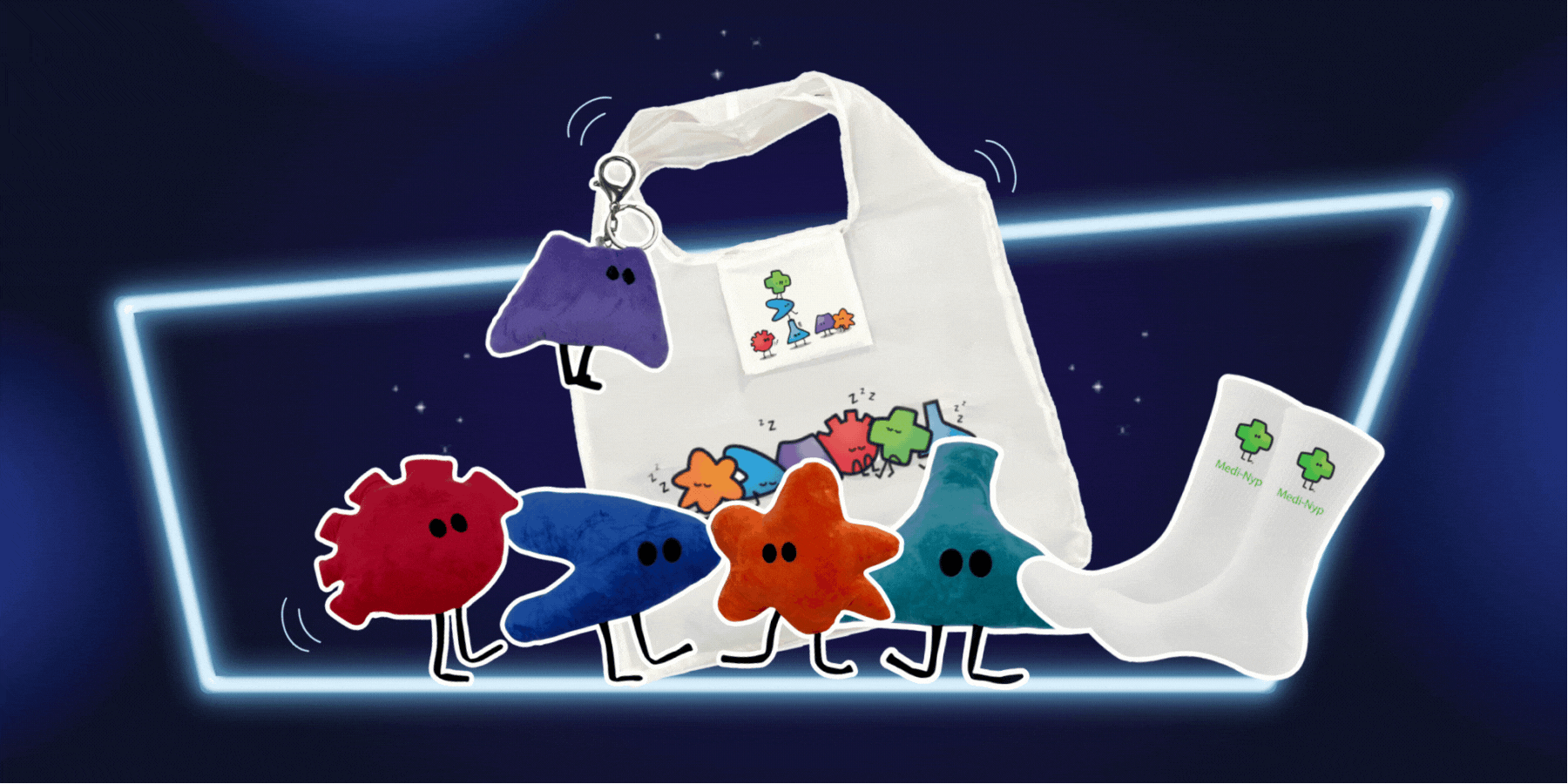 Snag awesome Open House collectibles: Nyps socks, stickers, bags, plushies and more!